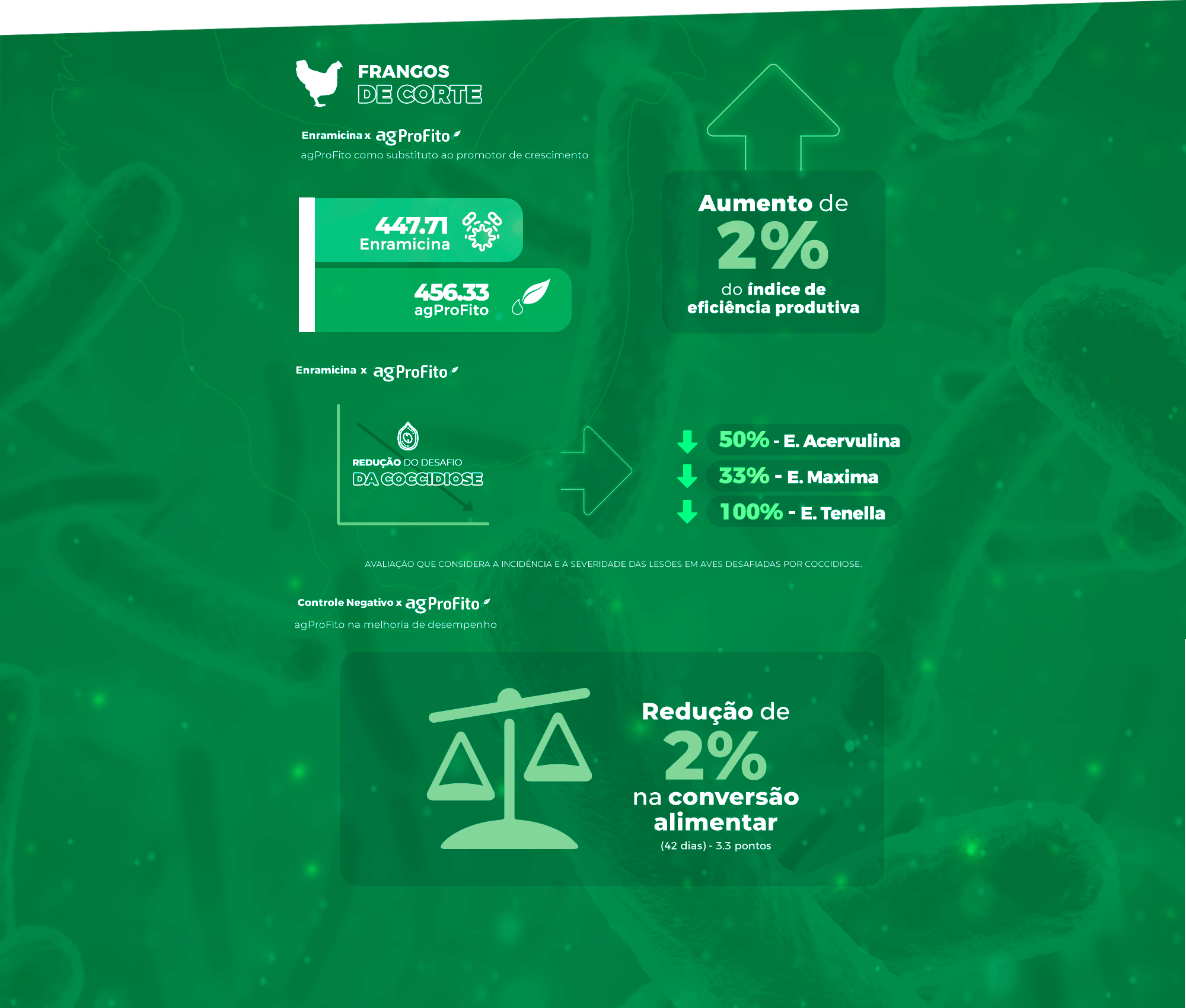 Máxima sinergia dos óleos essenciais, extratos fitogênicos e prebiótico. Tecnologia testada e validada em vários experimentos.